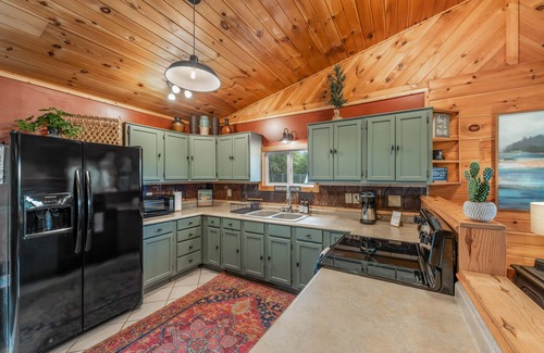 Leave your worries at the door when you enter this adorable, tastefully designed cabin on 3 secluded acres overlooking Whiskey Lake. Relax on the large front porch, or in the roomy Master Suite with King Bed. Watch wildlife thrive all around you or throw out a fishing line while you spend time in nature at this unique, peaceful property. This cabin has been carefully curated with your comfort in mind from the linens all the way to the hand-selected art. Centrally located 8 minutes from downtown.