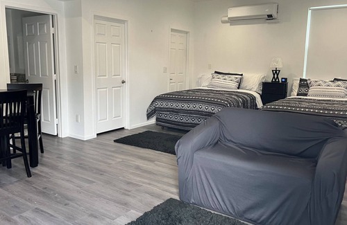 Private Cozy Studio with full kitchen, 2 queen beds, and full washer and dryer. Comfy beds and relaxing atmosphere. TV and Wi-Fi to help you unwind and lots of room to move around and enjoy your stay😊