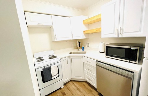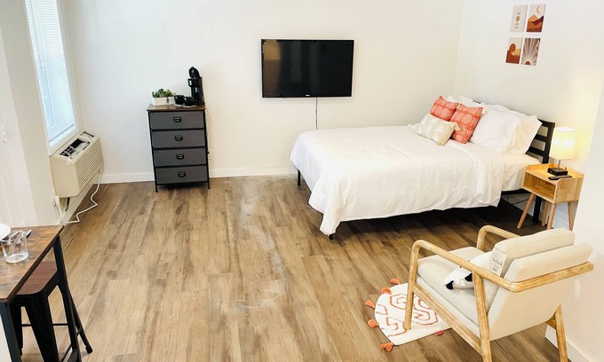 With a beautiful queen bed in the room, guests can relax and unwind after a day of exploring the city. The apartment also offers amenities such as heating, AC, and WiFi. Plus, there's a coin laundry available for added convenience.