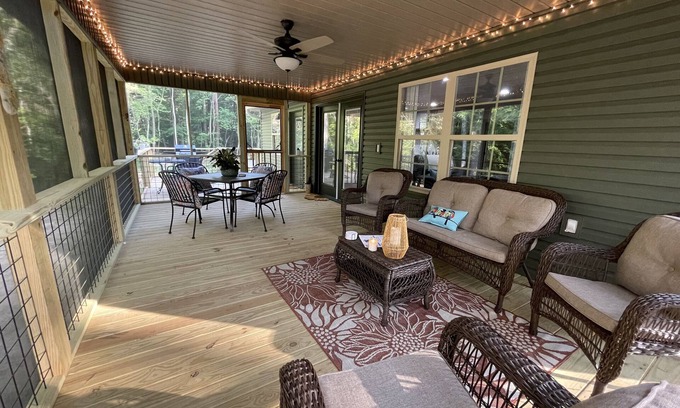 Cozy cottage nestled in the woods with large screened in porch to listen to the birds. Bedrooms have blackout blinds for a prefect night sleep. Fire pit for evenings with the family. Only one mile to Mentone brow park to watch beautiful sunsets. We have games for the rainy days. Fully stocked kitchen. We are 1.4 miles from Lil Mole Run golf course, and best of all a private creek to walk and enjoy all to yourself. This is a new property and the yard is still in progress, thank you for your understanding.