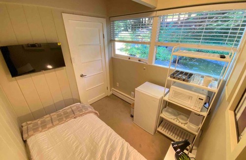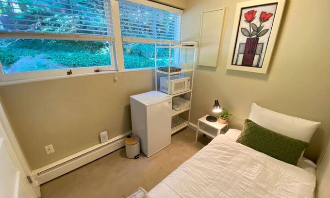 This cozy, compact cute room features a single sized twin bed, making it ideal for individuals seeking a comfortable and intimate space. the room is thoughtfully designed to maximize functionality and create a soothing atmosphere. The layout allows for efficient use of space, high end mattress that provides a relaxing spot for a restful night's sleep. Amenities include fridge, microwave and kettle. Minutes to Caulfield mall Safeway, Subway, Starbucks + Horseshoe bay ferry terminal. Room # 1