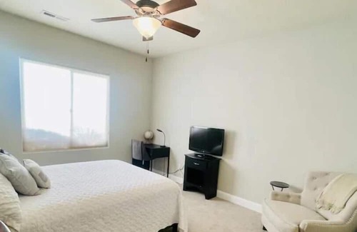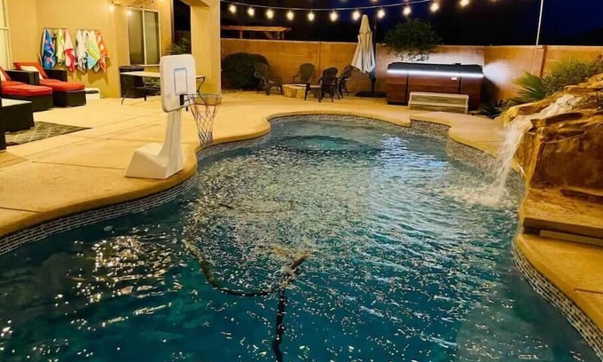 Inviting lower-level retreat with 3 bedrooms, two bathrooms and private access to luxurious amenities including a soothing hot tub, 4k-screen theater, refreshing pool with a stunning rock water-fall, serene patio, and cozy gas fire pit - oh and I almost forgot, a ping-pong table! -perfect for relaxation and entertainment after a day of exploring all of what St. George has to offer.