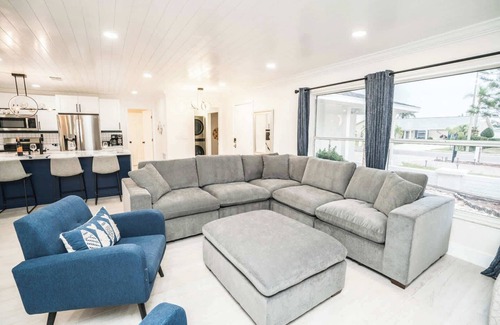 Escape to Bay Beauty, a stunning waterfront retreat where adventure and relaxation go hand in hand! Located near Tampa, Clearwater, and Sunset Beach, this 3-bedroom, 2-bathroom home sleeps up to 8 guests and offers direct canal access—perfect for boating, fishing, or simply soaking in the coastal vibes from your private dock with a boat slip.