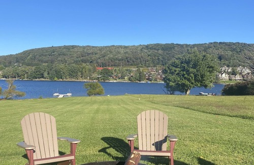 3-bedroom, 2 bath lakefront log home with 1 King, 1 twin, 2 queens and 2 sleep sofas (queen).