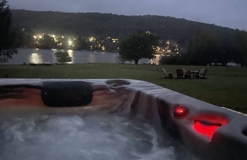 This home has a private dock, fire ring, gas grill, hot tub, large flat front yard, and parking for 4 vehicles. We are dog friendly!