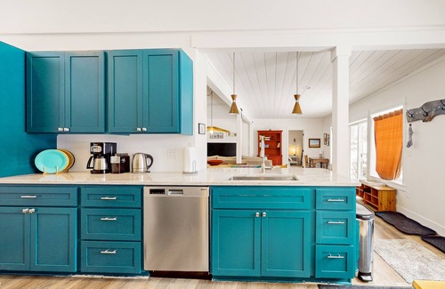 Fun splashes of color and unique vintage pieces fill the bedrooms. A rarity for PNW rentals, this home is cooled by central air-conditioning! A washer/dryer and board game collection round out the interior amenities.