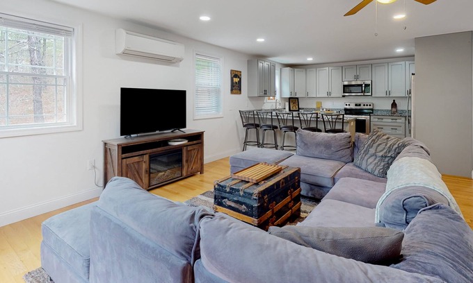 The family room presents a lovely space to create happy moments together. Play a game of checkers, or sit and chat around the warmth of the wood stove. For your complete convenience, be sure to utilize the private washer/dryer whenever your clothes need a refresher.