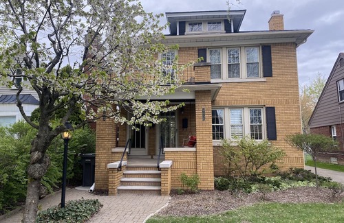 Historic West Dearborn, walking distance to Greenfield Village, restaurants, Henry Ford museum, downtown West Dearborn. Close to Ford Motor Company engineering campus, Detroit Metro airport, and downtown Detroit. Upper flat with spacious living room and dining room. Fully equipped kitchen. 2 bedrooms and a pull out couch. Sleeps 6. 2 balconies and nearby parks. No pets or smoking.