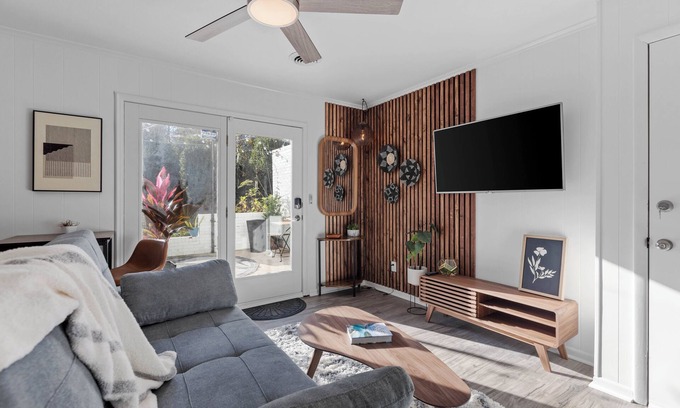 Welcome to your peaceful getaway, central to everything in Tallahassee! King bed ✔ Spacious patio and fenced back yard ✔ Private Parking and Driveway ✔ Dogs Welcome ✔ Well stocked kitchenette ✔ Mid-century charm ✔ Coffee, tea, snacks ✔✔✔