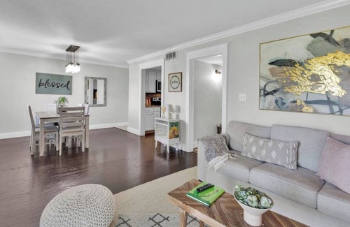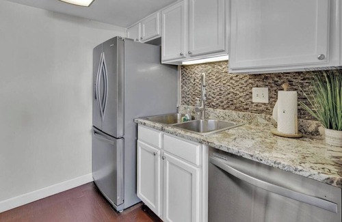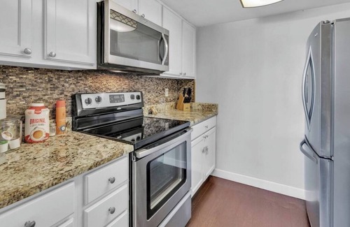 With a spacious living area that's perfect for lounging and watching your favorite shows on the Smart TV, free WiFi included, and a well-equipped kitchen with stainless steel appliances, cookware, dishware, and utensils, you'll feel right at home during your stay.
