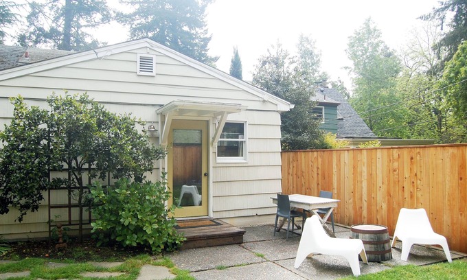 Gorgeous cottage in Lake Oswego's First Addition with private alley parking and entrance. Open living/dining/kitchen, generous bedroom w/ queen Tempur-pedic bed and large closet, SS appliances, Corian counters, dishwasher, and washer/dryer. An easy walk to LO restaurants, shops + Tryon Creek hiking trails! Great outdoor living space with private yard, patio, and great afternoon light when the sun's out :)