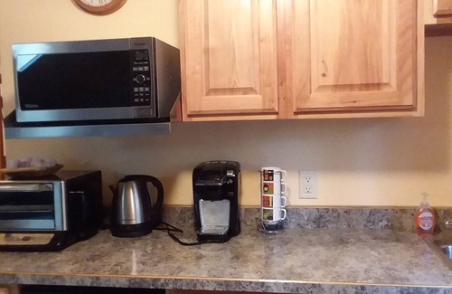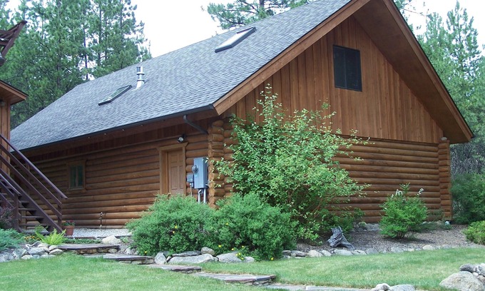 This immaculate, quiet guest apartment, which comprises the second story of our log garage, can be rented for a minimum 2 night stay. We also welcome guests for longer stays at significantly reduced weekly and monthly rates. We provide a short-term lease agreement, requiring a damage deposit, for extended stays. We are located minutes from downtown Hamilton (walkable to town and to the river) in a quiet, park-like setting in the foothills of the Bitterroot Mountains. The guest quarters features a large family/game room with two convertible beds, Comfy Sack lounger, fold-up ping-pong table, Wi-Fi, TV, Quadra-Fire gas stove, and two opening skylights. Fully equipped kitchenette contains several countertop appliances, dishes and utensils, as well as convection, microwave, and toaster ovens. Under the counter refrigerator/freezer plus separate larger refrigerator/freezer in mudroom. The large bedroom boasts a queen bed, sitting area, desk, private balcony, its own Quadra-Fire gas stove, and through-wall air conditioner. Outside, you can enjoy your own patio with table and chairs and a bbq grill.