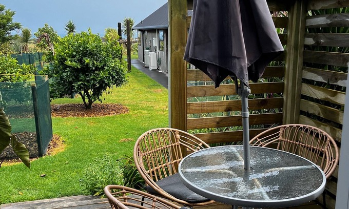 Small but perfectly formed, stylish, guest studio, situated on a peaceful lifestyle block within minutes from civilisation. This studio is fully insulated with double glazing. It’s located just 2 minutes drive from one of Taranaki’s best beaches and 15 minutes drive from New Plymouth, which means you get the best of both worlds, peace and quiet or get emerged in one many of Taranaki’s attractions.