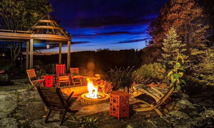 Our Guesthouse is located in the most gorgeous year-round setting, sitting alongside beautiful coy-fish filled pond that makes it a perfect destination for an extended family getaway. Blue Forest Farm Estate is nestled in the foothills of Grantham Mountain, in the town of Plainfield, NH. This extraordinary 326-acre estate includes multiple ponds, rolling mountain views, and beautiful hiking trails. It is unparalleled as a mindfulness meditation retreat & healing sanctuary!