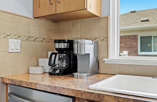-Kitchen is fully stocked with cookware, dishes, and all the essentials needed to enjoy a meal