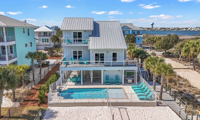 Private BEACH AND BAY access? Who says you can't have BOTH?! Castaway Cottage by Bailey Vacation Properties is located inside a quiet neighborhood in Perdido Key, Florida with PRIVATE BEACH ACCESS for the neighborhood AND backyard access to BOATING ON THE OPEN WATER. The neighborhood is surrounded by the sanctuary of PERDIDO KEY STATE PARK, which adds to the peacefulness. Come relax on the uncrowded beach, swim in the PRIVATE HEATED POOL, fish off the backyard TREX dock, hit the volleyball around, practice on our PUTTING GREEN and park YOUR BOAT or a RENTAL Boat on the water right in the backyard!