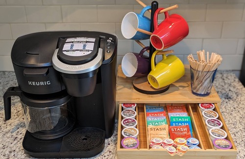 ✹ Keurig dual coffee machine with both K-cup pods and ground coffee to brew a cup and a carafe of your favorite varieties
