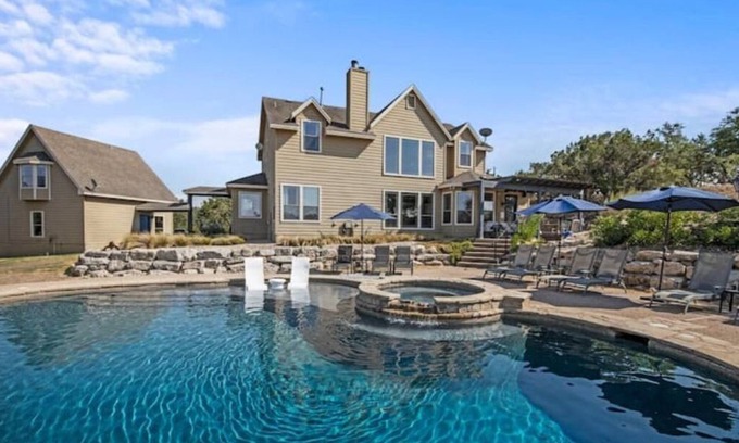 Best-rates for the Dripping Springs house starts from $1,299 per night with includes Parking, Pet Friendly, TV, Wellness Facilities, Hot Tub, Air Conditioner, Sports/Activities, Bedding/Linens, Fireplace/Heating, Entertainment, Barbecue/Outdoor Cooking, Pool, View, Security/Safety, Internet, Private Pool, Ocean View, Balcony/Terrace, Guest Services, Child Friendly, Kitchen, Laundry StayAndPlay offers fully equipped golf villas, golf hotels, golf resorts, luxury golf cabins, and exclusive golf retreats, making it easier than ever to find your perfect golf escape — ideal for families, peaceful getaways, or pet-friendly retreats with the whole crew.