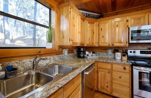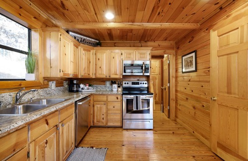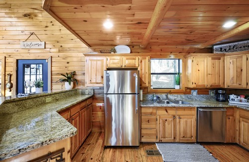 Spend your days soaking up the sun on the 1,200 square foot wraparound deck or enjoying a bonfire at the fire pit with your loved ones now just off the main deck closer to the kitchen. This cabin offers a, 5-person hot tub with 51 jets and ambient lighting! Enjoy privacy and serenity while relaxing in this soothing hot tub that's accessible off the first-floor bedroom or from the wraparound deck.