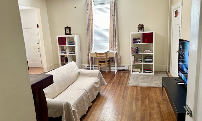 House was originally an enormous house that has been restored and creatively turned into 4 apartments (yay to small-space living... or at least while traveling!) Your cozy 1 bedroom apartment is downstairs and completely private. There is private parking in the back of the building, as well as street parking on both cross streets. Walk around to get in through the front red door, where you will find the keycode lock.