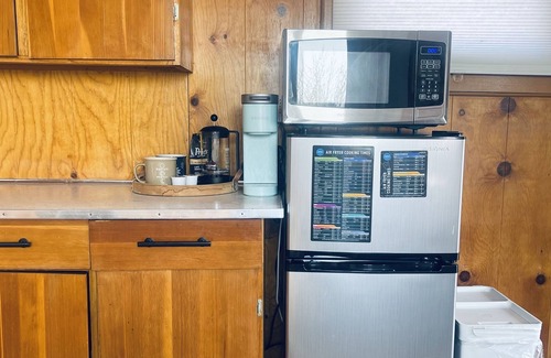 This cabin is located at the back of the property off a main route to Jackson so offers great privacy with accessability to Jackson Hole, Grand Tetons National Park and Yellowstone. There are 2 rooms linked together in this tiny cabin. The first bedroom is a studio space with a TV and a small kitchenette with an air fryer, microwave, fridge, toaster, electric kettle and coffee. The second is a twin bunk set up ideal for kiddos. The cabin comes with some essentials: all the beds will be made with linens and towels and shampoo/conditioner. We have a Queen Avocado matress in the main room for your comfort with various high quality pillows for your individual preference.