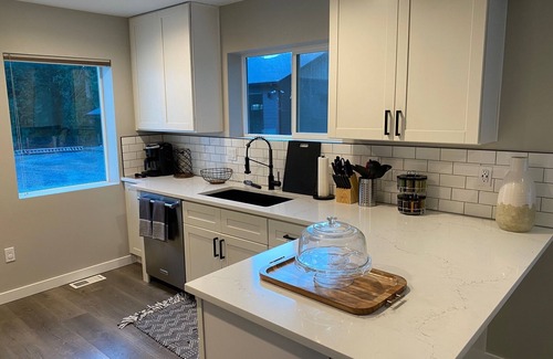 2 bedroom 1 bath newly remodeled home in Puyallup. Close to downtown, Washington State Fair, and highway access. Very close to Tacoma Dome (15 min drive), downtown Puyallup (5 min), and local hospitals. Enjoy having no close neighbors and feel safe with a fully fenced property with security gate. Property has security cameras to protect guests and property from intruders. Minutes from South Hill and Tacoma malls. Close to restaurants, coffee, and shopping.