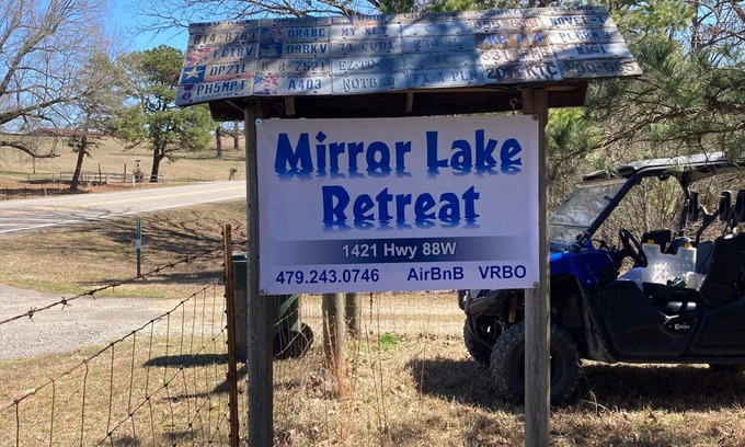 11 acre private lake with 3 BR, 2 1/2 bath 2800 sq ft home. Large furnished deck with outdoor dining and grill overlooks lake. Kayaks/small rowboat and life jackets available for use. Bring your fishing pole. Ten miles from Mt Ida. 26 miles from Mena. Close to the 1.5 mile Serendipity Hiking trail. 40 minutes from Wolf Pen Gap ATV Trails. BR #1 - 1 King, BR#2 - 1 Queen +1 bunk bed, BR#3 - 2 single over full size bunk beds. Living room sofa has queen bed. (house can sleep 12 - Nightly fee of $375 is for 4 people, $25 additional fee for each person, each night ) Fully stocked kitchen with utensils, dishes, flatware, bakeware and pots and pans. Coffee maker and blender. Convection oven, microwave and gas stove.
