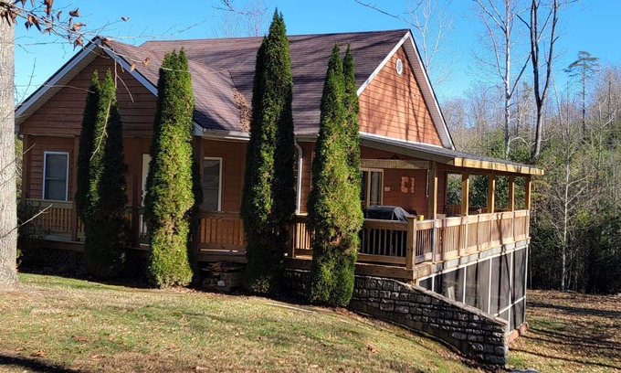 The house has been recently updated and is new to the rental market. The cabin features a large driveway with plenty of room to park boats, trailers, and automobiles. We recently added a new hot tub on the lower patio. This lower patio is NOW screened in as of 5/9/2021. The living room, lower level family room, and All bedrooms have smart TVs with a spectrum app for local channels and basic cable stations. Log into your Netflix, Amazon, Disney +, or Hulu account. Free High-Speed internet through Spectrum (Not Satellite) and WIFI. Perfect for working on location if needed.