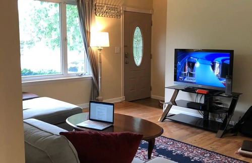 Feel at home with access to the entire house which includes three comfortable bedrooms, fashioned with new king, queen, and full-sized mattresses. Enjoy meals together in the sun lit kitchen, or take it outside to the deck where chairs, glass table and umbrella are arranged. Start your mornings refreshed with a Keurig cup or pot of coffee. Enjoy the snacks provided and feel free to cook meals in the fully equipped kitchen.