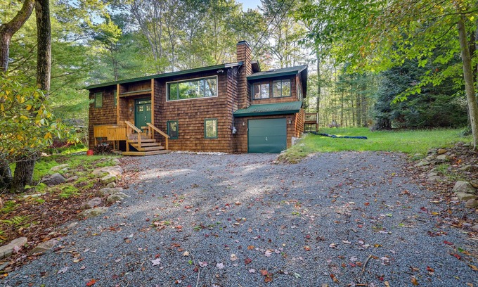 Discover the beauty of the Poconos from this idyllic cabin vacation rental! Nestled on a peaceful wooded property, this renovated retreat features 3 cozy bedrooms, 2 bathrooms, and a full kitchen. Stay home and enjoy soaking in the 7-person hot tub, relaxing in the sunroom, or grilling on the deck. If you're seeking adventure, stroll to the lake or hit the slopes at Camelback Ski Resort. With its central location and top-notch amenities, this cabin is perfect for your next Pocono Pines getaway!