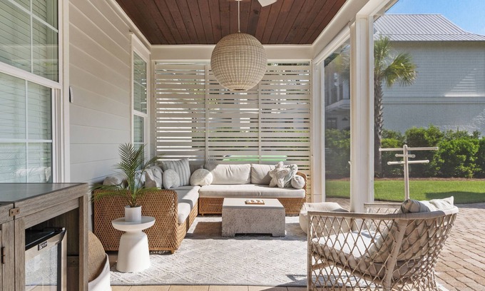 The fun doesn't stop there though with this location - cruise a one-and-a half mile bike or golf cart ride west with the gulf breeze in your hair and you will cross over the scenic Coastal Camp Creek Dune Lake to reach "The Big Chill." It hosts concerts, movies & sports games on a jumbotron, restaurants, bars and boutique shops. Take the golf cart an additional 2 miles to find the Old Florida Fish House and a quaint village where you can dine on scenic Coastal Eastern Dune Lake, enjoy a coffee, or buy fresh fish at Buddy's Market. On your way back home, stop by Coastal Deer Dune-Lake State Park where you can walk or bike a quarter mile boardwalk over a beautiful dune with scenic views of the lake and the gulf. The Coastal Dune Lakes on 30A offer amazing views of a rare natural phenomena that only occur in a handful of locations around the globe, a fresh water lake that is only separated from the saltwater by a narrow sand dune. A 5-minute drive north of the home is the brand new Watersound Publix.