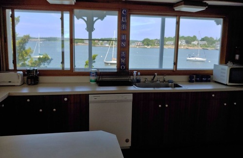 Cut in Two East is a Historic Beach Cottage located in the exclusive Thimble islands, off the coast of Stony Creek, Connecticut. A unique and commanding island, encompassing one large island with a classic 3-bedroom, 2 bath cottage and a detached studio/guest house sleeps up to 10. Set high on a granite rock cropping this home offers 360-degree views of the shoreline, the majestic Thimble Islands and open views to the shores of Long Island. Guests will enjoy rustic beauty of this historic old cottage set back in time with its wood floors, exposed beams and eat-in country kitchen. Guests will be taken back by the most spectacular sunrises and sunsets from this island while enjoying warm summer breezes during the day and evening. A fisherman's delight, features include a covered wrap-around porch, patio with barbecue grill, a deep-water dock with float and a guest cottage that sleeps 2. Accessible by your own boat (up to 20') or public ferry that runs hourly in season. This cottage is rented out on a 6 day minimum basis