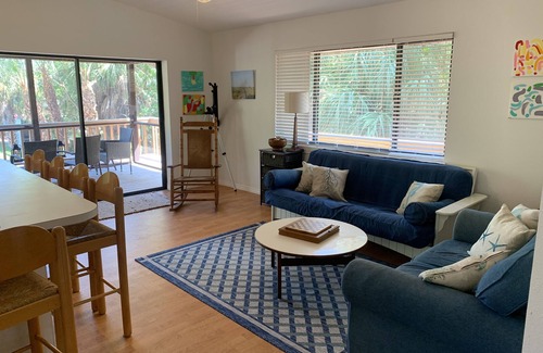 Hurricane Milton Update: Our home is now available to enjoy. Perfect island getaway centrally located on Little Gasparilla. Nestled quietly in the middle of all the island's tropical beauty, Paradise Beach house is located just steps from the beach and bayside/dock. For those of you who haven't been to LGI, you won't want to miss this unique kind of escape. Time spent here is like no other- stripped down to what is essential and natural, life becomes simple and easy to enjoy. The island is truly magical- you have to see for yourself. Whether you are on a family vacation or romantic getaway, Paradise beach house is the perfectly located, private stay, filled with relaxation and/or adventure. Our house has 2 bedrooms, 2 bathrooms. Master with a new king and 1/2 bathroom. 2nd bedroom with two brand new twins, one full bathroom and a pull out in the living room. Sleeps 4 comfortably and can sleep up to but no more than 6. You will need a water taxi (pirates water taxi, the do not like to book anything less than a week prior) or a boat to get to the island (Dock 51), the island is not accessible by car. Be it bitter sweet, long awaited Starlink provides strong reliable internet. There is island grocery delivery, but we recommend grocery shopping before crossing the bay. Trash service is provided at 3 kitchen size bags per week. Golf cart, kayak, and many other activities are available for rent. (Rentals are suspended as of now due to Milton) We are happy to discuss any further details should you choose to inquire.