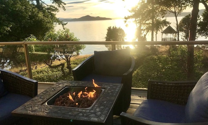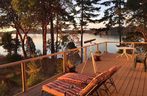 Enjoy breathtaking views of the ocean and the majestic Gulf Islands from everywhere on the island during the day, followed by unforgettable sunsets in the evening. Relax, breathe in the fresh salt air, sip a glass of wine, and let the sounds of nature soothe your soul from your expansive sundeck, our cozy reading terrace, the lush front lawn, or anywhere else on this tranquil islet. Don't be surprised if you wake up to deer in the front yard, otters in the nearby bay or an eagle perched in one of trees.