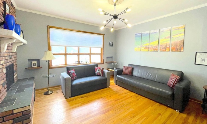 Historic Red Bank home, recently restored & on the same block as the train station! This gem is walking distance to Broad St. restaurants & the riverfront. We have 2 bedrooms, 1 loft bedroom, 2 full bathrooms + shared private backyard w/ fire pit! Twin beds can be converted into king beds. Third floor loft bedroom is accessed through a private stairwell located through a secret door in the second floor bedroom with twin beds. Across from yoga studio, Sickles Market, Soul Kitchen, Two River Theatre & Count Basie Theater. Train stops from NYC to Long Branch & Asbury Park. Plenty of parking. Check our speakeasy themed unit next door!
