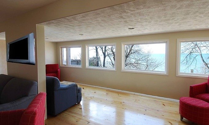 Welcome to Edge Water Lodge, your perfect lakefront getaway for families and large groups! This completely remodeled and modern property is located on Lake Erie and features 10 bedrooms with 4 bathrooms. The Lodge has 9 queen beds, 1 twin bed and 4 full sleeper sofas, sleeping 26 people total. Flat screen TVs are in every room and the master suite has a jacuzzi tub. You will be comfortable in the summer with full A/C and cozy in the wintertime snuggled up next to our 2 electronic fireplaces. Enjoy stunning views from the overlook deck with access from the bedrooms on the second story. Every modern convenience is yours topped off with a great view and private lake access. Grab a glass of wine, sit by our cozy fire pit, and enjoy life by the lake at the Lodge.