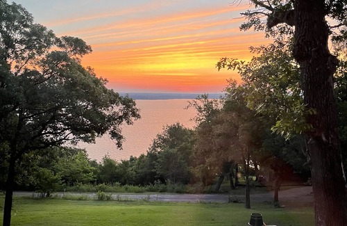Our home sits on a peninsula with privacy and an amazing view of Lake Texoma! The house was remodeled this year and is patiently awaiting you and your family’s arrival! Large yard with multiple decks providing several different breathtaking views of Lake Texoma with sunrises in the morning and sunsets in the afternoon. Enjoy your favorite movie or sporting events from the large covered patio, game room, or in the living room overlooking the lake.