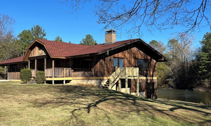 Welcome to a secluded, two-story, gated cedar lodge nestled beside a private 5-acre lake. Just 22 minutes from Hot Springs National Park and 18 minutes from Benton, this rustic getaway is perfect for family retreats, or a peaceful escape in nature.