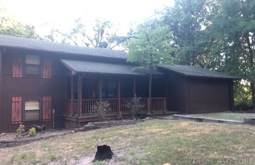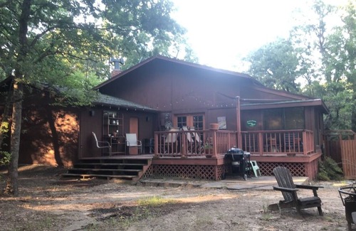 Private lakefront getaway with a sandy beach below the back deck! | Cabin in Checotah