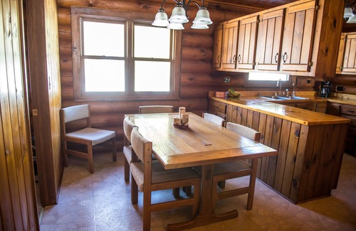 The 3-bedroom log cabin is warm and inviting. All three bedrooms are located on the main floor. There is a large kitchen and dining room for meals and game nights! The basement is currently unfinished, but has a ping-pong table, foosball table and a TV with a DVD player for rainy days. Keep in mind that the cabin might be best for fully supervised or older kiddos (the staircase and porch railings are rather open, and the nearby water and forested areas need to be taken into consideration!) The cabin does have Wi-Fi, but no cable television. Phone coverage is decent within the cabin but can be limited elsewhere on the property (and on the drive in!). This property will offer you a perfect opportunity to disconnect and listen to the loons in the morning, while sipping coffee on the porch swing!