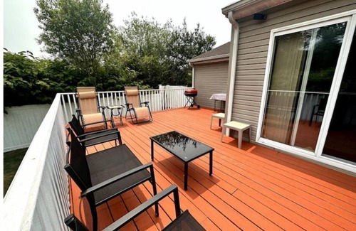 Our home is located at the end of a tranquil street with a private large backyard complete with a deck and 16' x 32' above-ground pool. The backyard area is fenced and tree lined offering complete privacy and plenty of space to run around. Fire up the grill, relax on the deck, or take a dip in the pool. Our home has everything you need to unwind and enjoy.