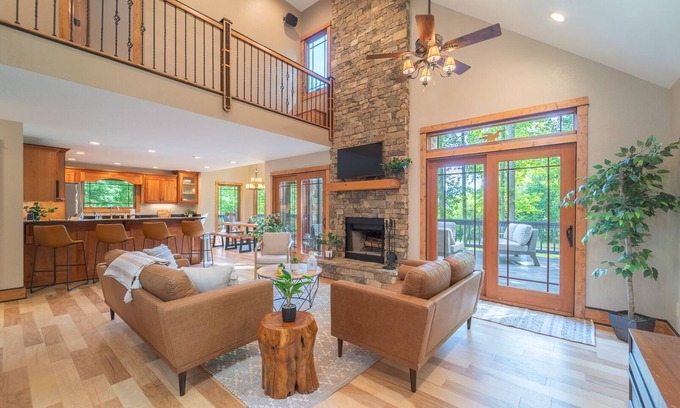 Early birds catch some stunning pink/orange mountain sunrises from the great room and decks. While nighttime s'mores around the fire pit at Frog Pond give everyone something to look forward to before bed, and the stargazing here is amazing!
