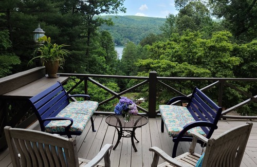 Our secluded treehouse will be your nest in the woods. Paved driveway allows for easy mountain access. Pet friendly cabin with a beautiful Lake Rabun view from our wrap around porch. Open floor plan allows for bright sunshine to cascade indoors. King bed and extra sleeping daybed is ideal for couples and couples with small children. Also our cozy screened in porch allows for comfortable outdoor dining, watching movies and summer naps! Located across the street from Hall's boat house & marina. Walking distance from Max's Lakeside Restaurant & Bar, Lake Rabun Hotel and Lake Rabun pavilion. We are close to Tallulah Gorge, Clayton, Black Rock Mountain, and multiple hiking trails. There are many activities in the area including fishing, zip lines, white water rafting, waterfalls, hiking trails, horse back riding, boating and much more! Come enjoy a magical weekend in Rabun.