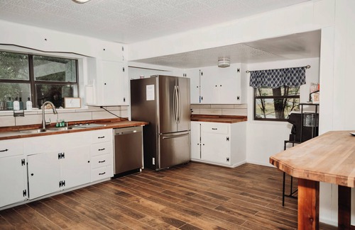 Escape to our 13-acre Nueces River House, a perfect blend of natural beauty and comfort. Situated just north of Camp Wood, Texas, this historic home comfortably sleeps 12, recently remodeled, and promises a serene retreat. A unique riverfront experience with access to the Nueces River. The heart of the house is its large deck - perfect for the stunning Texas sunsets or gathering around the firepit. The property also offers kayaks for exploring, tree swings, and hammocks for ultimate relaxation.