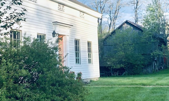 New listing on VRBO but already a guest approved STR! The beautiful Greek Revival style farmhouse has been restored to feature the unique rustic details of the house while adding modern conveniences for guests to enjoy! Situated on several acres, neighbors are set apart, and the large yard features a fire pit to enjoy in the evening. This is the perfect space when you want to be a short drive to downtown, but also want a private retreat all to yourself, away from it all!