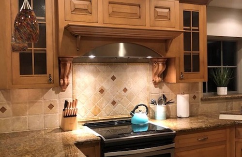 Fully equipped kitchen includes stainless appliances, blender, hand mixer, crock pot and lots of granite counter space. Breakfast nook has a table and 4 chairs plus 2 bar stools, ideal for gathering around while meals are being made.