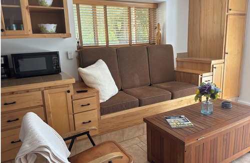 Convenient access to grocery stores, parks, restaurants, schools & outdoor spaces. Perfect hideaway tucked on a private property surrounded by lush vegetation & plenty of wildlife. Private driveway, private covered patio & terraced gardens. Walk, bike & trolley everywhere: Restaurants, Grocery, Coffee, Brewery, Shopping, River, Trails, Schools, Rec Center, Downtown. You will love seclusion while being walking / biking distance to essential amenities. Complete privacy in the heart of town.