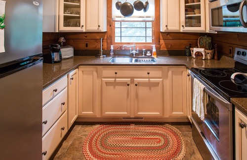 On the main floor, you'll find a great room, kitchen, dining area, full bath and one bedroom with a queen-size bed. Upstairs is a sleeping loft with a queen-size bed and private bath.