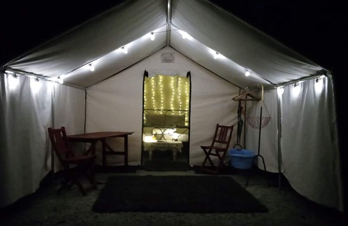 • Spacious tent with queen-sized bed