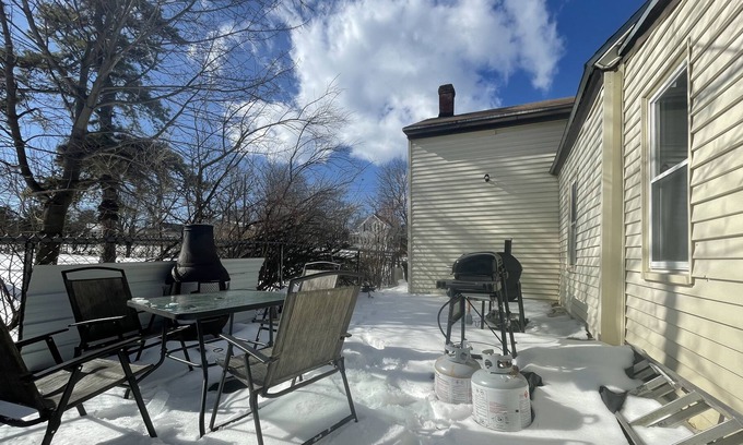 We also have a fireplace outside next to the grill. Please, do not leave the fireplace unattended, and smother the fire with water from the sink or snow to put the fire out and close the top. There is free wood that I stacked before taking off. If there is no more wood outside you can always find some at MarketBasket or other local gas stations like the Shell in Londonderry.